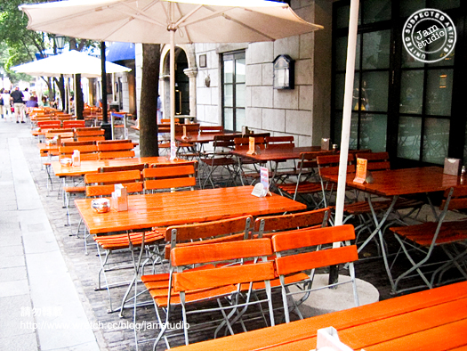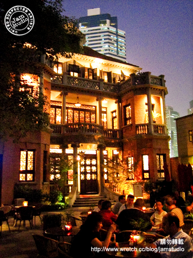 大家悠閒在餐廳的老洋房外吃吃喝喝。