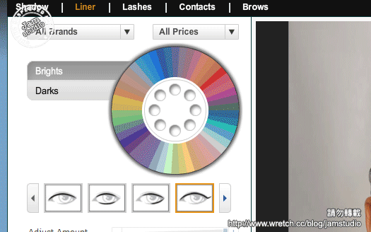 和前面的底妝相同都是先分類別再用輪盤選色,