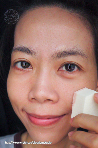 大家看看我上過泡沫隔離霜又再用了粉底液,海綿還是沒有滲透太多哩~