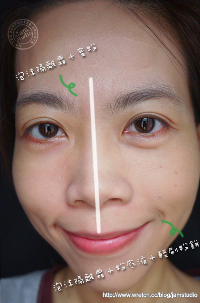 另一天也擦了一般膚色的泡沫隔離霜試拍給大家看看。