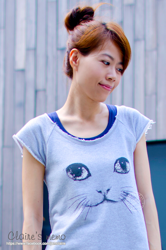 國外很多這類不修邊的T-shirt看起來好率性,再加上超萌貓咪臉