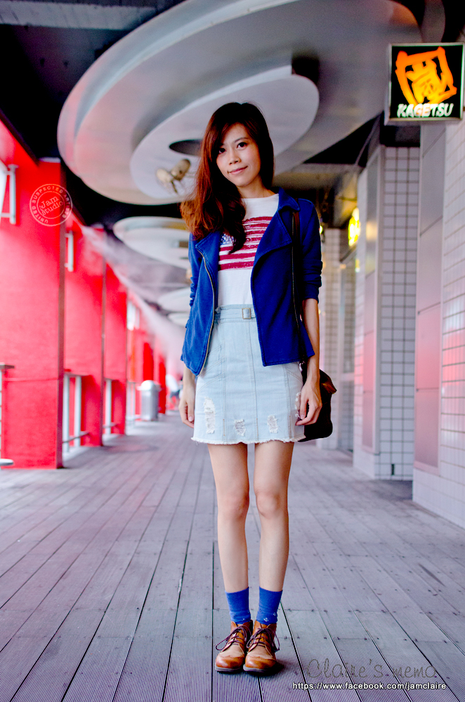 下身的高腰牛仔裙是今年夏天買的,但是因為太熱一直沒穿過,